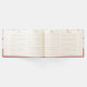 Ein Weihnachten wünscht ein Gästebuch mit einem Foto eines süßen Mops, der schläft, während er eine rote Weihnachtsmannmütze trägt. Fröhliche Weihnachten ist auf der Hutband geschrieben, in einem trendigen handgeschriebenen Schriftart. Eine schwarze Grundierung mit bunten Lichtern umgeben den Rahmen dieses bezaubernden Fotos. Der Hintergrund ist ein festliches, von Zuckerrohr gestreiftes Muster in rot-weiß und grün. Am unteren Rand steht ein individualisierbarer Text: Frieden, Freude und Möpsen.