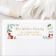 Feierliche und rustikale Urlaubsplanung mit goldfarbenem Text, umgeben von einer roten, grünen und goldenen Blumengrenze.