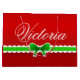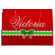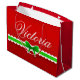 Weihnachtsgeschenktasche mit grünem Bandentwurf und kundengerechtem Namen.