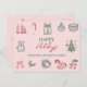 Diese elegante Urlaubskarte mit hübschen, von Hand gezeichnet Weihnachtsbildern, Kerzen, Ornamenten, Weihnachtsbaum, Teddybär, Schaukelpferd und festlicher Vegetation, die alle auf einem sanften, blütenrosa Hintergrund angeordnet sind. Mit einer warmen "Happy Holidays" Nachricht und einem individuell anpassbaren Familiennamen ist diese Karte ideal, um Freunden und Lieben herzliche Urlaubswünsche zu senden. Eine stilvolle Mischung aus modernem Minimalismus und nostalgischem Urlaubscharme. Auf der Rückseite können Sie Ihren Text und Ihre Namen schreiben.