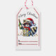 Festlicher Waschbär mit Flasche und Weihnachtsbele Geschenkanhänger