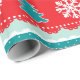 WeihnachtsPackpapier mit Schneeflocken und Weihnachtsbäumen.