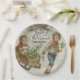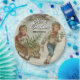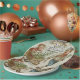 Eine fröhliche Urlaubspapiertafel mit einem Jungen, der mit einem Mädchen, das einen Weihnachtsbaum hält, einen Schlitten zieht. Personalisieren Sie mit frohen Weihnachten und Ihrem Familiennamen für einen nostalgischen Tischakzent.