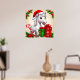 Festliches Cartoon Pferd in Weihnachtsmannmütze mi Poster