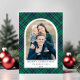 Weihnachts-Weihnachtskarte des Karierten Fotos mit festlichem Grün.