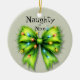 Festliches grünes Bow-Lights Naughty oder Nice Fot Keramik Ornament