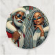 Der Weihnachtsmann und ein Begleiter sind bereit zu feiern, beide mit stilvollen Weihnachtsmotiven. Sie stehen vor einem Hintergrund von Urlaubsleuchten und Dekorationen, bereit für eine festliche Ansammlung.