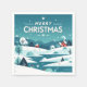 Dieses Weihnachtsmotiv ist eine schöne Abbildung eines schneebedeckten Dorfes mit einer festlichen Botschaft. Es ist perfekt für die Ferienzeit und würde eine großartige Ergänzung zu jeder Weihnachtsdekoration machen. Das Bild zeigt den Charme und die Wärme eines gemütlichen Winterdorfes mit rot-weißen Häusern, schneebedeckten Bäumen und einem blauen Himmel mit Schneeflocken.