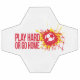 Grafischer, gelber und roter typografischer Slogan mit einer Kugel im Netz liest, spielen hart oder gehen Zuhause. Ideal, um Fußball- und Fußball-Spieler zum Üben und Probieren inspirieren. Einzigartig gestaltet von Sarah Trett.
