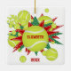 Dieses sportliche Tennis-Keramik-Ornament besticht durch eine "Explosion" von Tennisbällen unterschiedlicher Größe und festliche Rot-, Grün- und Weißsternformen - individuell nach Spielernamen oder Fantasienamen auf Vorder- und Rückseite - katz_d_zynes
