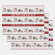 Weihnachtsblätter mit niedlichem Spielzeugwagen und Wohnmobil in Rot und Grün für die Weihnachtsgeschenkverpackung. Original Fotografie Urheberrecht Ann Powell alle Rechte vorbehalten.