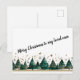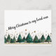 Diese bezaubernde Weihnachtspostkarte vereint den Urlaubssinn mit einer Touch spielerischer Eleganz. Über der unteren Hälfte steht eine Reihe stilisierter immergrüner Bäume in einer fröhlichen Versammlung, deren Äste mit skurrilen Ikonen wie Sternen und Schneeflocken geschmückt sind. Die Bäume variieren in ihrer Größe und schaffen ein angenehmes Gefühl von Rhythmus und Bewegung, als würden sie zu einer stillen Weihnachtsmelodie wechseln. Über dieser festlichen Ansammlung steht der Gruß "Frohe Weihnachten für meine Lieben" in einem fließenden, kursiven Schriftart, der den Zehnten dieser Saison eine persönliche Touch verleiht. Der Hintergrund ist unberührt weiß und sorgt dafür, dass die faszinierenden Details der Bäume und die herzliche Botschaft in den Mittelpunkt der Bühne gerückt werden.