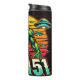 Eine auffällige Abbildung zeigt zwei grüne Außerirdischen, die von absteigenden UFOs umgeben sind, die helles Licht gegen einen orangefarbenen und gelb gestreiften Himmel senden. Der große, stilisierte und texturierte Text "AREA 51" verlangt Aufmerksamkeit und hebt den berüchtigten Standort hervor.