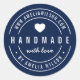 Rund Moderne Handmade mit Liebe Rundaufkleber mit dem Wort "Handmade" in fett gedrucktem Schriftart, "mit Liebe" in modernem Drehbuch, einem niedlichen Herz und einem doppelten Rand für Ihre Webadresse und Ihren Namen dazwischen in fett, das leicht zu personalisieren ist vor einer Hintergrundfarbe, die editierbar ist (klicken Sie auf anpassen). Es ist perfekt für Hobbyisten, Handwerker und Hersteller von handgefertigten Waren wie Künstler, Stricker, etc. Personalisieren Sie es, indem Sie den Platzhalter-Text durch Ihren Namen und Ihre Webadresse ersetzen. Für weitere Optionen, wie zum Beispiel die Hintergrundfarbe, den Schriftart, die Schriftgröße, den Abstand zwischen den Buchstaben zu ändern und um gekrümmten Text zu erweitern oder zu kontrahieren klicken Sie auf die Schaltfläche "Anpassen". *Bitte beachten Sie, dass das Zazzle-Wasserzeichen, das in der Zoomvorschau angezeigt wird, NICHT auf dem gedruckten Endprodukt erscheint. © Rosewood and Citrus