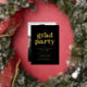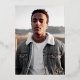 Stilvolle Graduiertenparty lädt ein mit "grad Party" in fett goldfarbenen Lettern mit dem Namen und dem Party des Absolventen auf schwarzem Hintergrund darzustellen. Die Rückseite der Schwarz-Gold-Graduierungsparty laden mit dem vertikalen Foto des Absolventen. Die schlichte Abschlussfeier lädt sowohl für Absolventen der Highschool als auch für Absolventen der Uni ein.