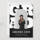 Mit dieser kühnen und spielerischen Einladung zum Abschluss feiert sie ihre große Leistung. Sie besticht durch eine inspirierte "GRAD"-Textlandschaft in großen Blockbriefen und ein modernes Foto-Ausschnitt. Das Schwarz-Weiß-Farbschema verleiht ihm eine lustige, feminine Touch - ideal für Absolventen der Highschool oder der Uni. Passen Sie Ihren Namen, das Datum des Abschlusses und die Veranstaltungsdetails an. Eine hervorragende Möglichkeit, Freunde und Familie zu den Feiern einzuladen!