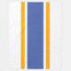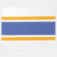 Dieses bunte Design zeichnet sich durch goldgelbe, schwebende Streifen aus, die einen breiten, lebhaften, fett blauen Mittelstreifen vor weißem Hintergrund hervorheben.