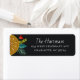 Diese stilvollen Rücksendeadressen-Aufkleber verfügen über eine handgezeichnete, orangefarbene Scheibe, Blume, Blätter und einen Kiefernhain auf dunklem Hintergrund. Alle Kunstwerke, die exklusiv von Orabella Prints kreiert wurden - Sie werden dieses Design nirgendwo anders finden! :
