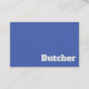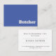 Visitenkarte des Butchers. Fett formatierte und klare typografische Visitenkarten für ein Butcher-Shop-Einzelhandelsgeschäft. Entworfen, um Ihre Professionalität in Ihrem Master Metzger Geschäft zu vermitteln. Blau und weiß.
