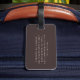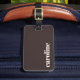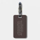 Dieses personalisierte Gepäckschild zeigt einen reichhaltigen braunen Hintergrund mit elfenbeinfarbener Typografie in einem einfachen, modernen Layout. Passen Sie den Namen an, um ein nützliches Reisetail für Gäste einer Hochzeitsreise, Willkommensgeschenke oder Gruppenreisen zu erstellen. Die neutrale Farbpalette passt leicht zu klassischen oder modernen Hochzeitsthemen und fühlt sich für alle Altersgruppen angemessen an. Ein praktisches Andenken, das Gäste auch noch lange nach der Feier verwenden können.