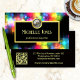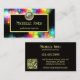 Visitenkarte mit fett farbigem Design mit hellen Glitzern auf schwarzem Hintergrund und einem goldenen Rahmen, um das Hinzufügen von Texten zu erleichtern. Das Logo ist optional, ebenso wie die einfach zu anpassende QR-Code-Vorlage.