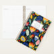 Personalisieren Sie diesen Planer mit Ihrem Namen in schwarz kursiv, gerahmt durch ein weißes Rechteck, auf einem fett, farbenfrohen Blumenmuster auf einem schwarzen Hintergrund.