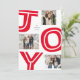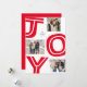 Freuen Sie sich auf diese kühne, moderne Urlaubskarte. Dieses einzigartige festliche Design bietet drei Fotos rund um lustige rote Buchstaben, die JOY schreiben. Diese coole Weihnachtskarte ist ideal für Fotos, Paare, Babys, Haustiere und vieles mehr. Die Rückseite ist ein passendes Rot mit Flecken und enthält auch Platz für eine benutzerdefinierte Nachricht, ein Familiennewsletter-Update oder es kann leer verlassen werden. Finden Sie ähnliche Designs und mehr Farben in der Kollektion Lea Delaveris Design Bold Joy. Dieses Design ist auch als digitale Weihnachtskarte Download verfügbar.