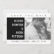 Feines geometrisches Foto Ankündigung Datum freihalten mit minimalistischem und modernem geometrischem Design in Schwarz und Weiß. Fügen Sie ein Foto und Ihre Hochzeitsdetails zu anpassen. Hintergrundfarbe auf der Rückseite der Einladung kann geändert werden, um das Foto zu ergänzen oder Ihre Hochzeitsfarbe hinzuzufügen.