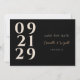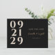 Mit diesem modernen und eleganten zeitgenössischen Save the Date Design heben Sie Ihre Verlobung-Ankündigung hervor. Mit fett gedruckter Zahlentypografie in Elfenbein auf einem schwarzen Hintergrund, mit einer Touch Gold, die die Namen der Ehepaare für eine luxuriöse Touch hervorhebt. Das minimale und zeitgemäße Design an der Vorderseite sorgt dafür, dass Ihre Gäste über Ihre kommende Hochzeit informiert werden, während die Rückseite Platz für zusätzliche Details und einen bequemen QR-Code bietet. Diese Save the Date-Einladung ist ideal für Paare, die einen stilvollen und raffinierten Weg suchen, ihren besonderen Tag zu verkünden.