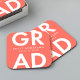 Maßgeschneiderte Untersetzer aus Abschluss mit "Grad" in fett weißem Schriftzeichen mit Korallenhintergrund. Personalisieren Sie die Abschluss Untersetzer, indem Sie den Namen und Abschluss des Absolventen Jahr. Die personalisierten Abschluss Untersetzer sind sowohl für Uni-Abschluss- als auch für Highschool-Partys geeignet.