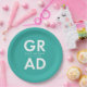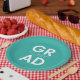 Maßgeschneiderte Abschluss-Teller mit "Grad" in fett weißer Schrift mit türkisfarbenem Hintergrund oder Farbe Ihrer Wahl. Personalisieren Sie die Abschluss Papier Teller, indem Sie den Namen und Abschluss des Absolventen Jahr. Die personalisierten Abschluss Teller sind sowohl für Uni-Abschluss- als auch für Highschool-Partys geeignet.