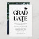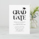 Moderne und einfache Graduierungsparty Einladungskarte mit Typografie Text, der "Graduate" in fett mit einer Abbildung einer Graduierungshülse. Sie können das Foto des Absolventen auf der Kartenrückseite hinzufügen. Ideal für Absolventen der Highschool und der Uni.