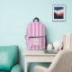 NewParkLane - Niedlicher, personalisierter Kids-Rucksack, mit einem skurrilen Muster aus fett rosa, weißen und lila Streifen und einer Textvorlage für Ihr Monogramm. Ein großartiges Schulgeschenk für ein junges Mädchen! Einfache Anpassung in Zazzle mit eigenem Text für ein personalisiertes Design. Alle Textstile, (Hintergrund & Typografie) Farben und Größen können an Ihre Bedürfnisse angepasst werden. Karo diese Kollektion für passende Artikel aus!