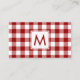 Fügen Sie Ihr Monogramm einfach über ein fett rotes und weißes Büffel kariertes Muster ein. Fügen Sie auf der beruflichen Visitenkarte wieder Ihren Namen hinzu und passen Sie den Jobtitel/die Spezialität/Firma, die Website und die Kontaktinformationen an. Perfekt für Buchhalter, Berater oder andere Berufe. Um das Design Classic Red and White Gingham Pattern auf anderen Elementen zu sehen, klicken Sie auf den Link "Rocklawn Arts" Kollektion. Digitales Bild. Copyright ©Claire E. Skinner. Alle Rechte vorbehalten.