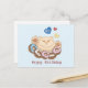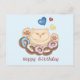 Fett Katze Süßzahn Happy Birthday Postcard auf blauem Hintergrund