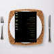 Mit dieser schwarzen Menükarte, die in den Imitaten eine auffallende "Lass’s Eat"-Folie enthält, können Sie sich bei jeder Feier aussprechen. Ideal für Hochzeiten, Geburtstage, Firmenessen, Proben oder jede stilvolle Veranstaltung. Vollständig anpassbar und für den Anzug sowohl lässiger als auch formeller Tischdecken mit modernem Flair konzipiert.