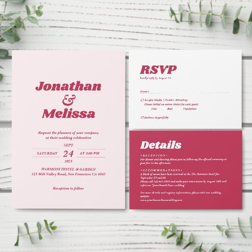 Bold Modern Retro Viva Magenta WeddingDesignt von Jessica Senarlo