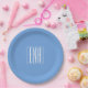 Fett Modern 3 Initialen Monogramm | Soft Blue Pappteller