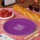 Fett Modern 3 Initialen Monogramm | Weiß und Lila Pappteller