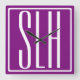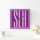 Fett Modern 3 Initialen Monogramm | Weiß und Lila Quadratische Wanduhr
