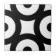 Feines, modernes Schwarz-Weiß-Design, zeitgenössische Keramik-Fliesen, schwarze Kreise mit Punkten auf weißem Hintergrund. Dieses geometrische Muster eignet sich perfekt für Innenarchitektur oder Backsplash. Kreise werden sichtbar, wenn mehr Fliesen zusammengesetzt werden.
