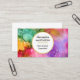 Auf der Vorderseite dieser schönen Visitenkarte befinden sich fett farbige Aquarellfarben-Spritzer, deren Name und Stellentitel in einem vergoldeten weißen Kreis in der Mitte in beliebter Typografie erscheinen, der durch einen Goldscheider getrennt ist. Auf der Rückseite der Karte befinden sich der Firmenname oben und drei Kontaktlinien unten, die in der Mitte durch einen Goldteil getrennt sind. Sie können dieses Element für sich selbst oder einen geliebten anpassen, indem Sie alle Textzeilen ändern.