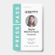 Kühne und moderne aquamarine Pressemappe Foto Identification Abzeichen. Das Design mit "Press Pass" an der Seite für eine einfache Ansicht und Identifizierung angezeigt. Das Foto wird in einem Kreisrahmen angezeigt, um einen modernen Look zu schaffen. Mit Logo, Foto, Jobtitel, Datum und ID Nummer individuell anpassen. Die Rückseite ist aquamarin und weiß mit einem Logo und einer Adresse. Die Farbe kann in eine beliebige Farbe geändert werden, um Ihre Marke Anzug, klicken Sie einfach auf Personalisieren und klicken Sie auf, um weitere Anpassungen vorzunehmen.