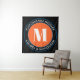 Fett Monogramm und Text | Schwarz-weiß Orange & Bl Wandteppich