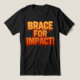 Dieser auffallende T - Shirt enthält den fett formulierten Satz "Brace for Impact!" in lebhaften orangen und roten 3D-Buchstaben, ergänzt durch dramatische Tropfeffekte. Die intensive Typografie und die dunkle Kulisse schaffen ein kraftvolles, edles Design, das perfekt für eine Aussage geeignet ist.