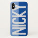 Lassen Sie Ihre Wahl des Namens kühn auf einem zweifarbigen Telefongehäuse dargestellt. Beispiel zeigt den Namen Nicky. Personalisieren Sie Ihre Auswahl an kurzen Namen.