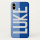 Lassen Sie Ihre Wahl des Namens kühn auf einem zweifarbigen Telefongehäuse dargestellt. Beispiel zeigt den Namen Luke. Personalisieren Sie Ihre Auswahl an kurzen Namen.