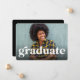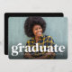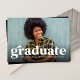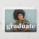 Mit einem kühnen Retro-Schriftart-Absolvent ist diese Fotokarte der perfekte Weg, um Ihren Abschluss bei Freunden und Familie anzukündigen. Das Vintage Styling ist fein und einfach für diese Abschluss-Ankündigung und perfekt auf Trend für diese geschlossen Klasse. Die Rückseite dieser Karte ist schwarz mit einer gesprenkelten Textur. Die Farbe kann geändert werden, indem Sie auf "Weitere Anpassung" klicken.