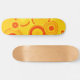Mit diesem Skateboard fahren Sie stilvoll mit einem kühnen, in den 1970er Jahren inspirierten Retro-Kreislauf-Muster in lebhaften Orangen und Gelben. Ideal, um Ihrem Skate einen Pop Vintagen Flairs hinzuzufügen: Sessions - Stehen Sie im Park oder auf den Straßen mit einem funky, auffälligen Design. Individuelle Skateboards - Ideal für Skater, die Retro-Ästhetik und fette Farben Liebe haben. Geschenke - Ein perfektes Geschenk für Skateboarder, die einen einzigartigen und nostalgischen Look genießen. Dekor - Zeigt es als cooles Statement für Retro-Räume oder Räume an.