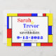 Eine lustige und funky Retro-Hochzeitseinladung, die so lustig wie Sie sind - ein nostalgischer Blick auf die Mitte der sechziger Jahre mit einem coolen kühnen Schriftart gepaart mit den Primärfarben Gelb, Blau und Rot in Schwarz in geometrischen Formen im Stil von Mondrian.